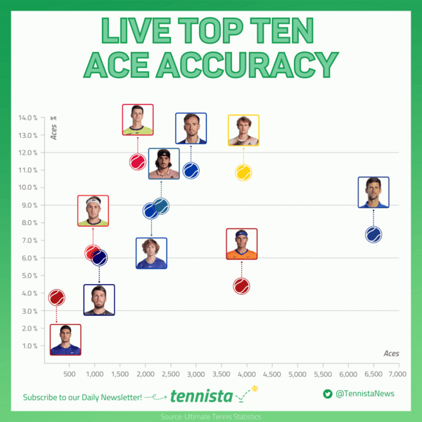 Seeing this graph confirms what I have heard so much when watching Carlitos' matches from the commentators: he has to improve his serve. I was just talking about it with a tennis friend and we agreed that Alcaraz with a more effective first serve would be a virtually impossible opponent to beat.